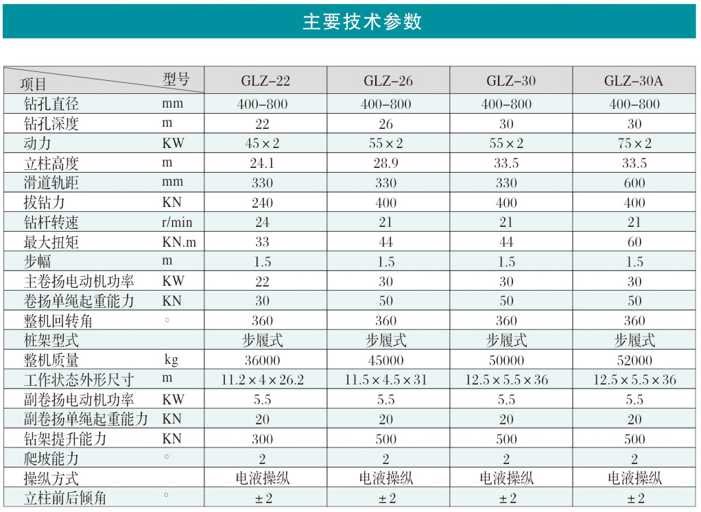 GL Z系列長螺旋鉆孔機是電液操縱、步履式行走、180度回轉(zhuǎn)、伸縮式斜撐連續(xù)起落樁架、中空式輸出軸三環(huán)減速:器動力頭為主要特征的新型的新型樁工機械。主機安裝于液壓步履式底盤上,靠機、電、液完成架樁起落,鉆具鉆進、提升、下降,整機行走、回轉(zhuǎn)、就位。該機可實現(xiàn)半解體拖掛運輸轉(zhuǎn)場。該機適用于粘土層、礫石層、砂土、濕陷性黃土及含有少量粘土層,亦適用于地下水位較高地層,除可進行一般長螺旋干法施工外,還可進行CFG工法和注漿工法施工,改變鉆具宜可進行深層攪拌施工。